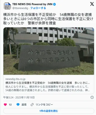 【悲報】同時に6つの市から生活保護を受け取っていた無職女、逮捕される