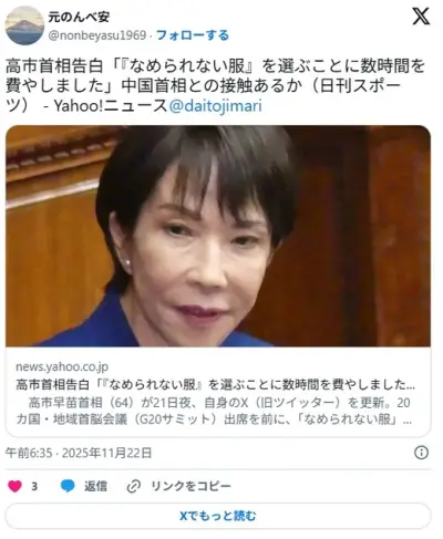 高市首相告白「『なめられない服』を選ぶことに数時間を費やしました」「外交交渉でマウント取れる服、買わなくてはいかんかもなぁ」