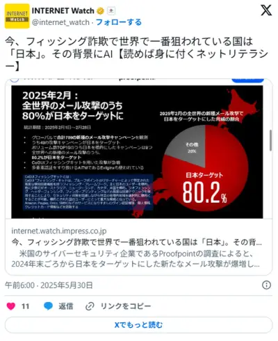 今フィッシングメールが熱い。ターゲットの8割が日本
