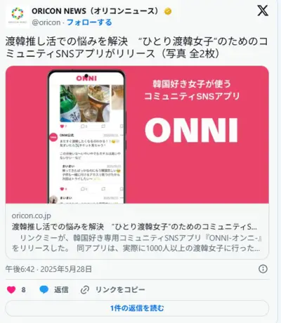 渡韓推し活での悩みを解決 “ひとり渡韓女子”のためのコミュニティSNSアプリがリリース [5/30]