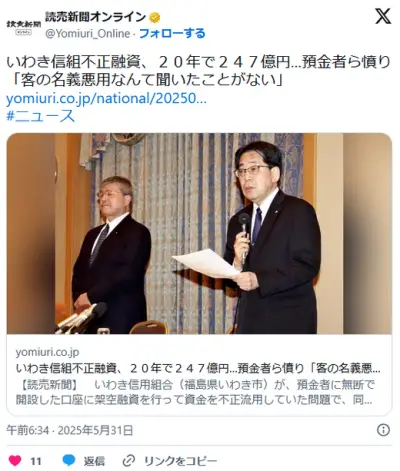 いわき信組不正融資、20年で247億円…預金者ら憤り「客の名義悪用なんて聞いたことがない」