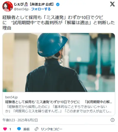 経験者として採用も「ミス連発」わずか10日でクビに “試用期間中”でも裁判所が「解雇は適法」と判断した理由 (東京地裁)