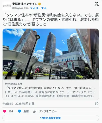 武蔵小杉「タワマン住人が町内会費払ってないのにお祭りに来やがる