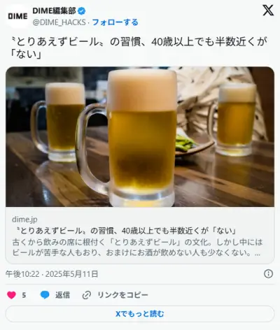 〝とりあえずビール〟の習慣、40歳以上でも半数近くが「ない」