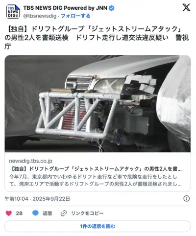 【社会】ドリフトグループ「ジェットストリームアタック」の男性2人を書類送検 ドリフト走行し道交法違反疑い