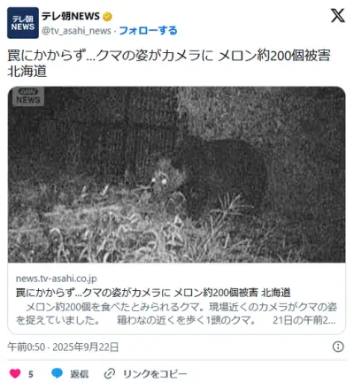 【北海道】クマのしわざか メロン200個、食い荒らされる