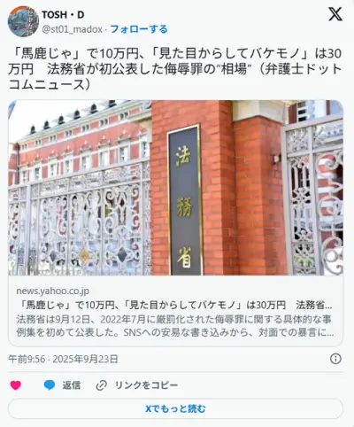 「馬鹿じゃ」で10万円、「見た目からしてバケモノ」は30万円 法務省が初公表した侮辱罪の“相場” 匿名掲示板やSNSで執拗かつ悪質…