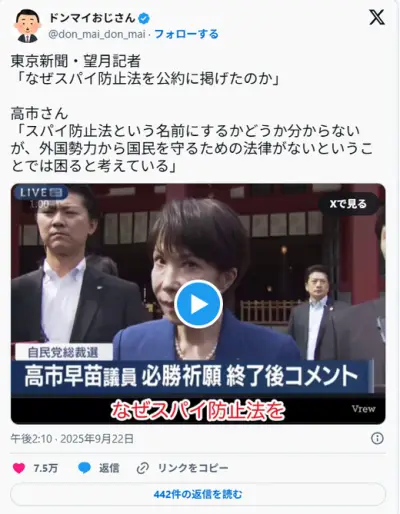 東京新聞・望月記者「なぜスパイ防止法を公約に掲げたのか」