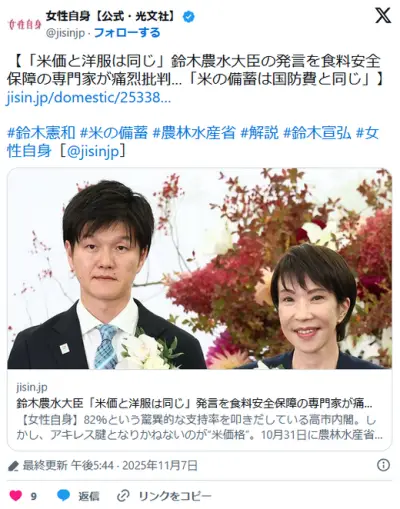 「米価と洋服は同じ」鈴木農水大臣の発言を食料安全保障の専門家が痛烈批判…「米の備蓄は国防費と同じ」