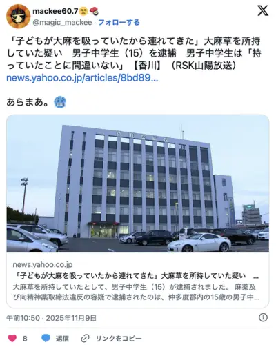 「子どもが大麻を吸っていたから連れてきた」大麻草を所持していた疑い 男子中学生(15)を逮捕
