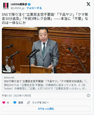 SNSで降り注ぐ“立憲民主党不要論”「下品ヤジ」「クマ発言30分追及」「午前3時レク自爆」
