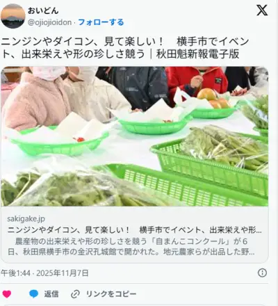 【秋田】自まんこコンクール開催 来場者は農産物の品質の高さやユニークな形に見入る