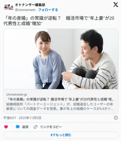 【結婚】「年の差婚」の常識が逆転? 婚活市場で“年上妻”が20代男性と成婚“増加”