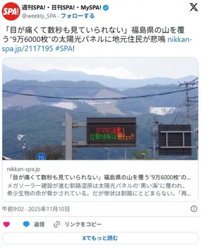 【メガソ】「目が痛くて数秒も見ていられない」福島県の山を覆う“9万6000枚”の太陽光パネルに地元住民が悲鳴 眩しすぎるハゲ山の闇