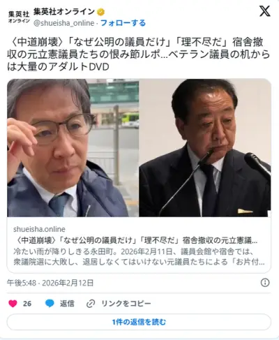 【中道崩壊】「なぜ公明の議員だけ」「理不尽だ」宿舎撤収の元立憲議員たちの恨み節ルポ…ベテラン議員の机からは大量のアダルトDVD