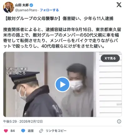 不良グループ抗争→バットで頭部殴打、バイクで走り殴打、歩行者に車で幅寄せ を相手の父母らに行う