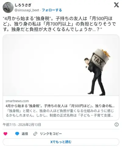 4月から始まる独身税 子持ちの友人は「月500円ほど」、独り身の私は「月700円以上」の負担