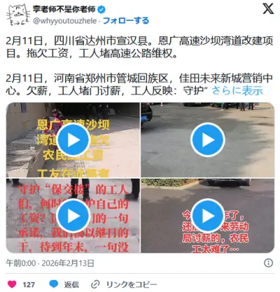 中国恩広高速賃金未払い、佳田未来賃金未払い、中国中鉄賃金未払い、江西省贛州市賃金未払い…