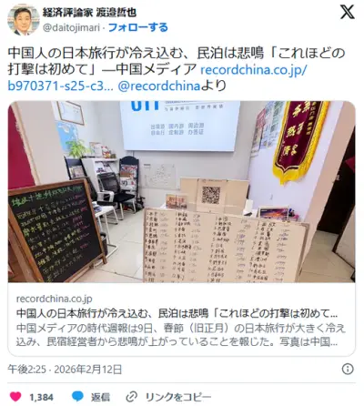 中国人の日本旅行が冷え込む、民泊は悲鳴「これほどの打撃は初めて」