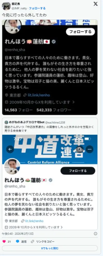 【すげえ】 蓮舫、Xのヘッダーを中道から立憲民主党に堂々と戻すwwwwwwwwwwww