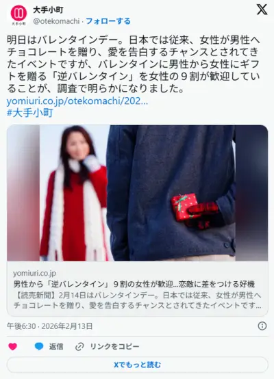男性から「逆バレンタイン」9割の女性が歓迎…恋敵に差をつける好機