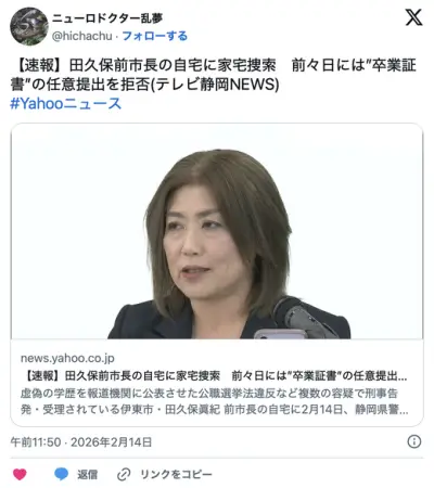 【速報】伊東市・田久保眞紀 前市長の自宅に家宅捜索 前々日には”卒業証書”の警察への任意提出を拒否