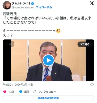 石破茂氏『その場だけ良ければいいみたいな話は、私は当選以来したことがないので』