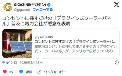 「プラグイン式ソーラーパネル」が馬鹿売れ、電力会社は規制呼びかけ「停電時に作業員が感電する」