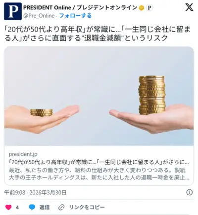 「20代が50代より高年収」が常識に…「一生同じ会社に留まる人」がさらに直面する"退職金減額"というリスク