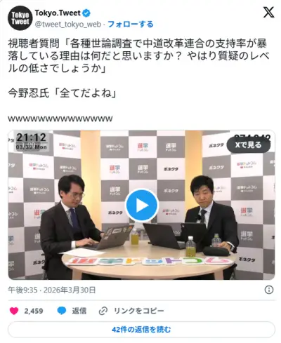 視聴者質問「各種世論調査で中革連の支持率が暴落している理由は何だと思いますか?」