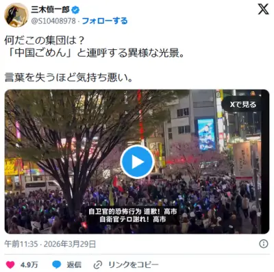 高市氏人気の逆回転が始まった⋯「代わりに謝る中国ごめん」デモでコール 「自衛官侵入事件」をめぐり
