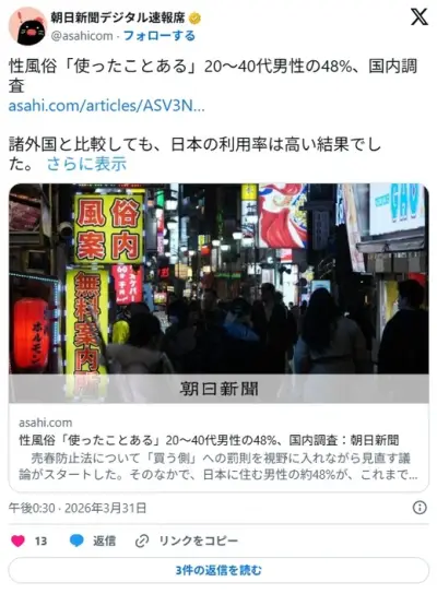 性風俗「使ったことある」20~40代男性の48%、国内調査 英国は3~5%