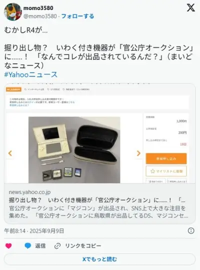 官公庁オークションに「マジコン」が出品され、SNS上で大きな注目を集める