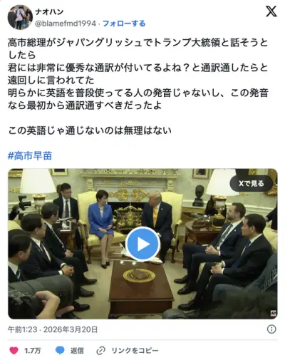 【悲報】高市早苗さん、トランプに「英語下手すぎるから通訳通してくれ」とやんわり怒られる