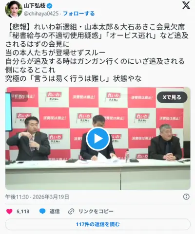 【悲報】れいわ新選組の大石あきこ氏、奥田ふみよ氏、山本太郎氏、逃亡