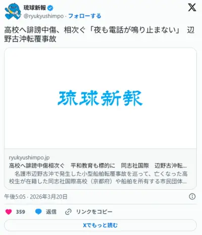 高校へ誹謗中傷、相次ぐ「夜も電話が鳴り止まない」 辺野古沖転覆事故 (琉球新報)
