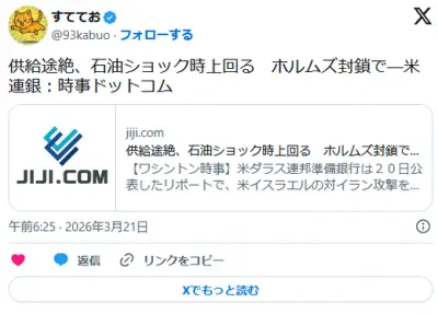供給途絶、石油ショック時上回る ホルムズ封鎖で―米連銀