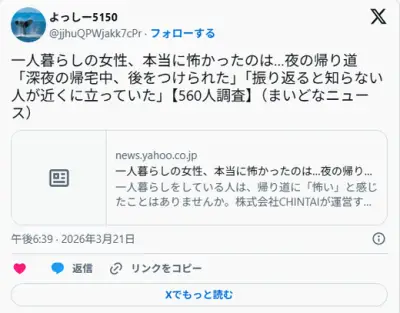 夜コンビニに行き帰り道若い女性の後ろを歩いていると振り返りながら怯えてかけて行く場合どうする?