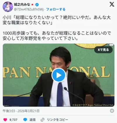 中革連・小川代表「総理になりたいかって?絶対にいやだ。あんな大変な職業はなりたくない」