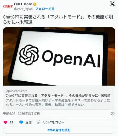 【速報】ChatGPT「アダルトモード」、ガチで詳細が明らかに!!!Gemini滅亡へwwwwwwwww