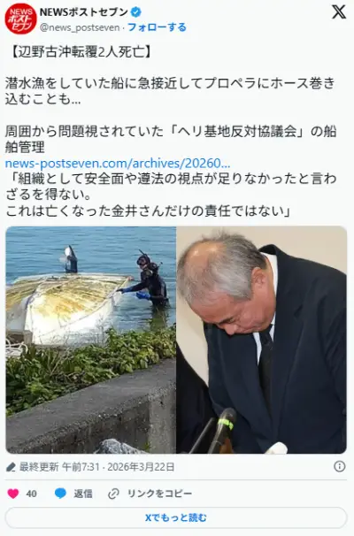 辺野古抗議団体、去年は漁船の酸素ホースをプロペラで巻き込む「死亡事故になりかけた」