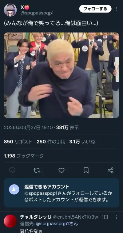 【悲報】松本人志、Xでも馬鹿にされまくるwwwwww