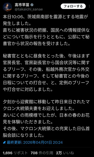 【悲報】高市総理のツイート、小学生の日記みたいだと話題にwwwwwwww