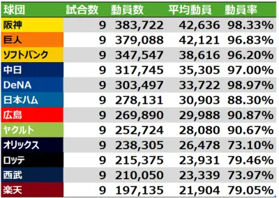 12球団交流戦の動員ランギグンwwwwwwwwwwwwww