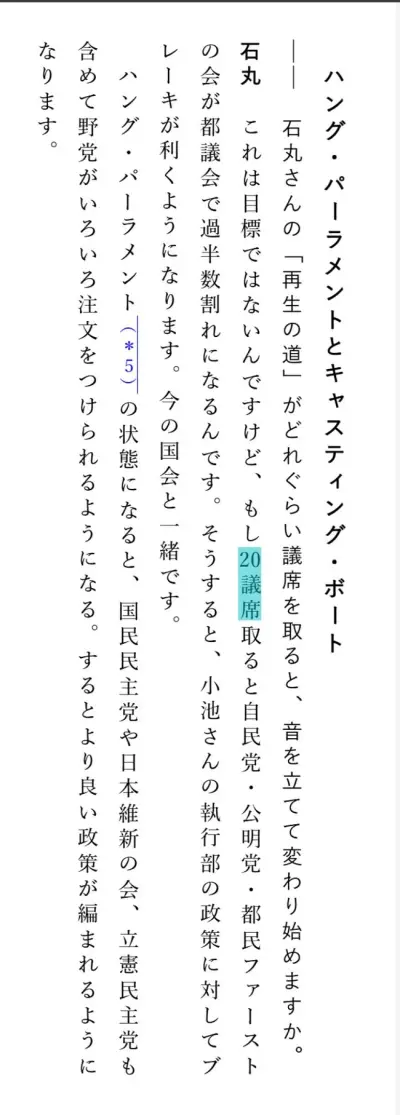 石丸(選挙前)「20議席くらい取れれば存在感あるかなーって感じです。」