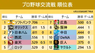 交流戦(全20回)の優勝回数wwwwwwwwwww