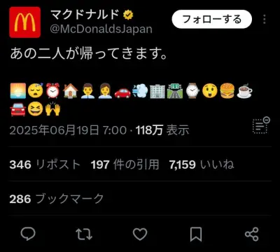 【画像】マクドナルド公式「あの二人が帰ってきます。」←誰