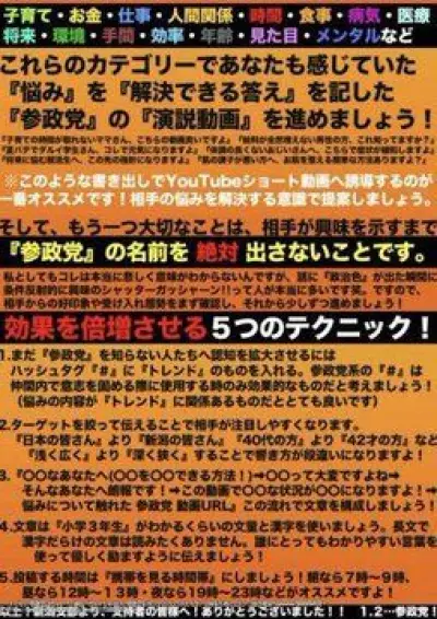 【悲報】参政党の勧誘マニュアル、限界突破wwwww