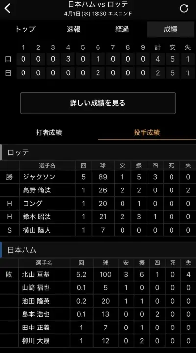 松本剛 5試合 .250(20-5) 0本 1打点 出塁率.286 OPS.536 wRC+54 WAR-0.2