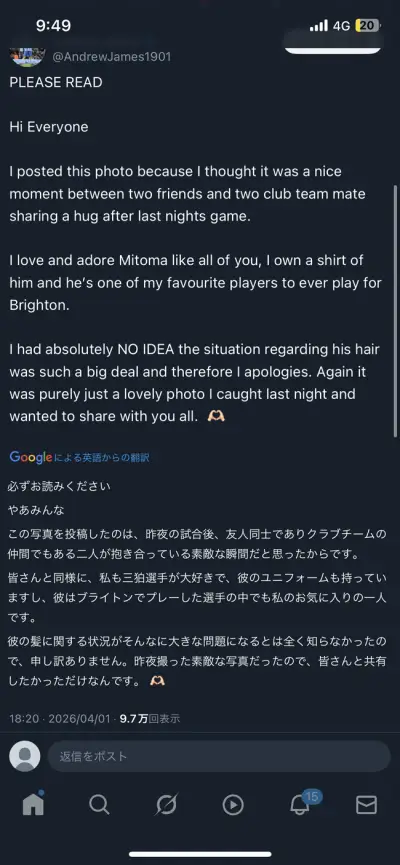 【悲報】三笘の私的なあられもない姿を激写した外国人、日本人に叩かれ謝罪に追い込まれるwwwwww